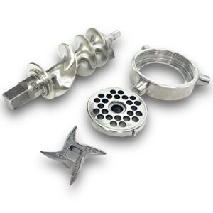 Lưỡi máy xay thịt hình quạt giúp trộn đều nguyên liệu, tạo độ dính, đàn hồi và mềm mại cho thịt. Trục trộn kép được làm từ thép không gỉ 304, có bốn chế độ trộn đảm bảo vệ sinh và hiệu quả. Động cơ kép lõi đồng mạnh mẽ, hiệu quả, an toàn, bền bỉ và tiết kiệm năng lượng.